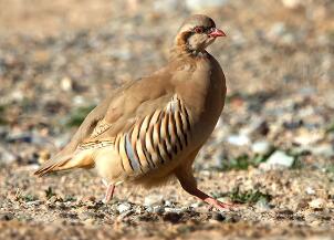 大石雞(學(xué)名:Alectoris magna)是雞形目雉科中等體型的鳥(niǎo)類,雄鳥(niǎo)體長(zhǎng)32-40cm,體重445-710g;雌鳥(niǎo)體長(zhǎng)23-45cm,體重442-615g。極似石雞但體型略大而多黃色。下臉部、頦及喉上的白色塊外緣有一黑線如石雞,但另有一特征性栗色線。尾下覆羽多沾黃。眼周裸皮緋紅。棲于蒿屬、錦雞兒屬和針茅屬等耐早稀疏植物的黃土丘陵的陽(yáng)坡、高原上雨水沖刷的黃土溝壑及巖石裸出被以稀疏薔薇科植物灌叢的石山溝谷的陽(yáng)坡。為廣食性鳥(niǎo),成鳥(niǎo)以植物性食物為主,包括花、果實(shí)、種子、葉子、根莖和嫩芽等。動(dòng)物性食物很少,主要為各類昆蟲。是中國(guó)特有種。