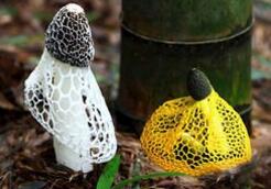 竹蓀(Dictyophora indusiata (Vent.ex Pers) Fisch)又名竹笙、竹參,常見并可供食用的有4種:長裙竹蓀、短裙竹蓀、棘托竹蓀和紅托竹蓀,是寄生在枯竹根部的一種隱花菌類,形狀略似網狀干白蛇皮,它有深綠色的菌帽,雪白色的圓柱狀的菌柄,粉紅色的蛋形菌托,在菌柄頂端有一圍細致潔白的網狀裙從菌蓋向下鋪開,被人們稱為"雪裙仙子"、"山珍之花"、"真菌之花"、"菌中皇后"。