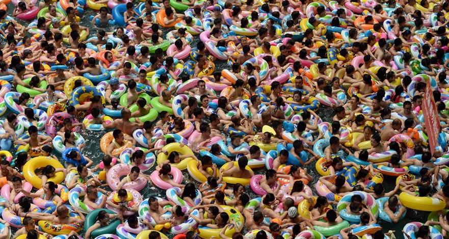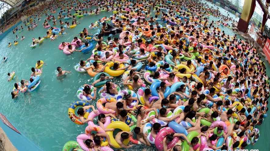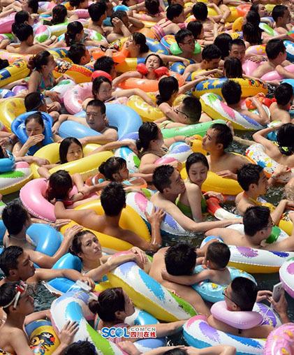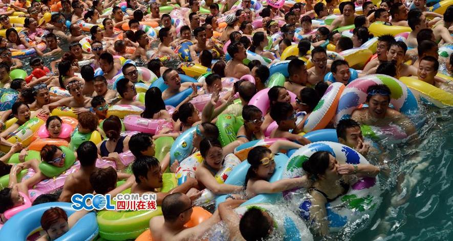 7月11日,四川多地迎來高溫,多地最高氣溫達(dá)到35℃。位于遂寧市大英縣的中國“死海”旅游度假區(qū)迎來避暑高峰,當(dāng)天8000多人涌進(jìn)游泳池避暑納涼,現(xiàn)場(chǎng)猶如“下餃子”。