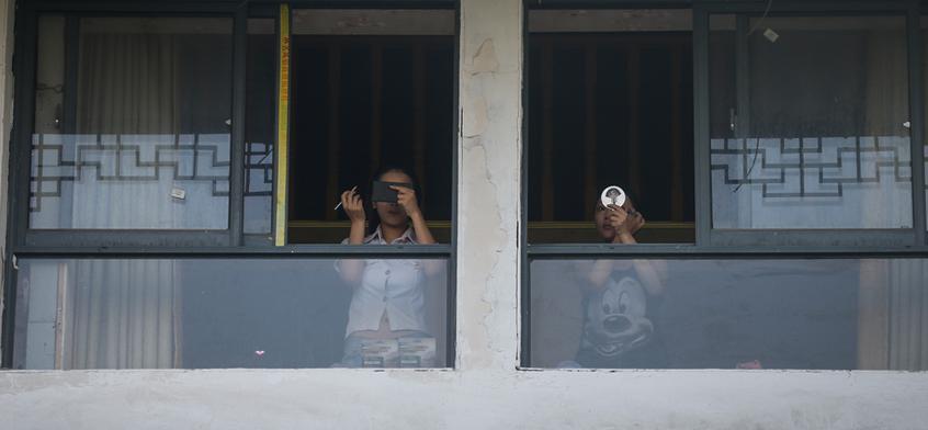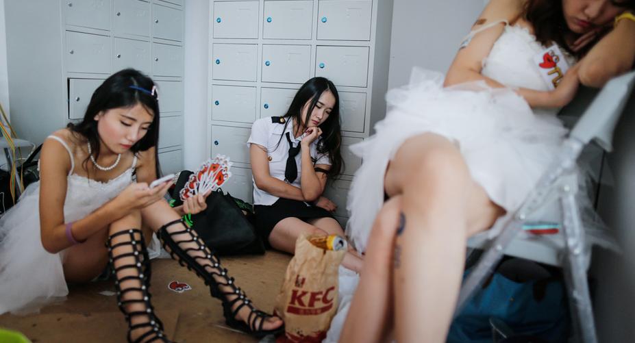 第十三屆chinajoy(中國國際數(shù)碼互動娛樂展覽會),4天公眾展會合計(jì)入場人次為27.3萬,再創(chuàng)歷史新高。在游戲娛樂產(chǎn)業(yè)中,“美女”是其中重要的元素,為了吸引觀眾,歷年的chinajoy都會請來美女站臺表演并和觀眾互動,姿色和身材成了廠商最看重的“廣告”。8月2日早上6點(diǎn),王先和岑岑已經(jīng)換好衣服,開始對著鏡子認(rèn)真地畫著睫毛。