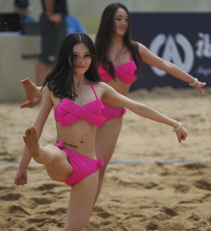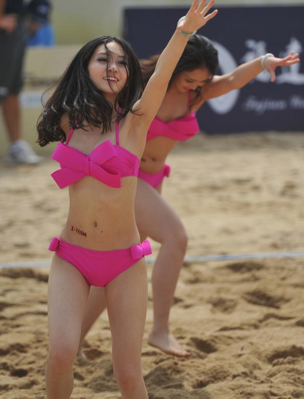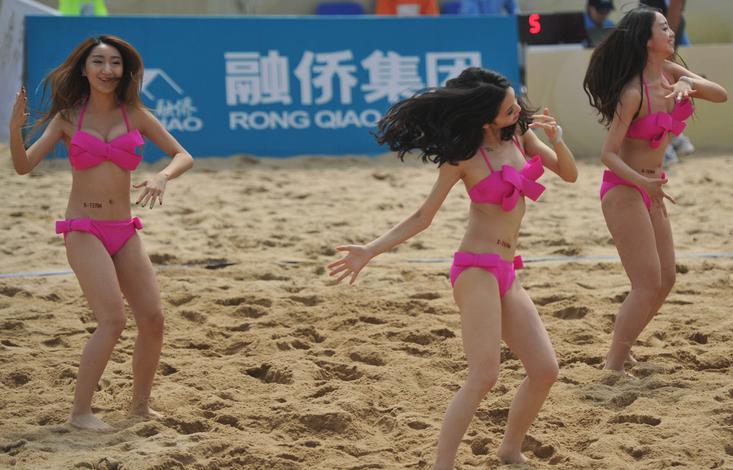 4月19日,2016世界沙灘排球巡回賽福州公開賽在福州舉行。比賽間隙,靚麗的沙灘寶_貝_激_情熱舞,讓緊張的比賽氛圍,輕松愜意起來。