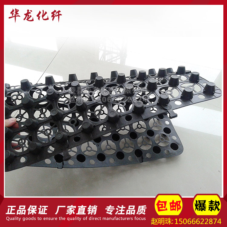 排水板是由聚苯 乙烯(hips)或者是聚乙烯塑膠底板經(jīng)過沖壓制成圓錐突臺(tái)(或中空?qǐng)A柱形多孔)而成。圓錐突臺(tái)的頂面膠接一層過濾土工布,以阻止泥土微粒通過,從而避免排水通道阻塞使孔道排水順暢。 傳統(tǒng)的排水方式使用磚石瓦塊作為導(dǎo)濾層、使用較多的鵝卵石或碎石作為濾水層、將水排到指定地點(diǎn)。而用排水板取代鵝卵石濾水層來(lái)排水則省時(shí)、省力又節(jié)能、節(jié)省投資、還能降低建筑物的荷載。
