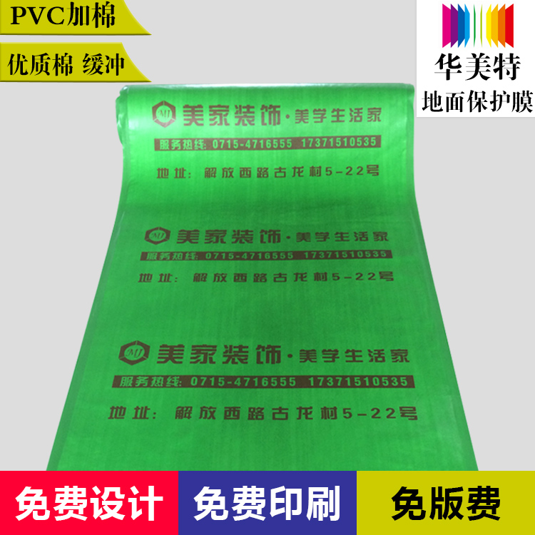 來華美特地面保護(hù)膜的客戶買的最多的型號是300g,即pvc加棉的。pvc能防水、防油漆、耐磨、抗撕拉。當(dāng)有重物落下,針織棉就能夠起到減震、緩沖作用。以免損壞地板。