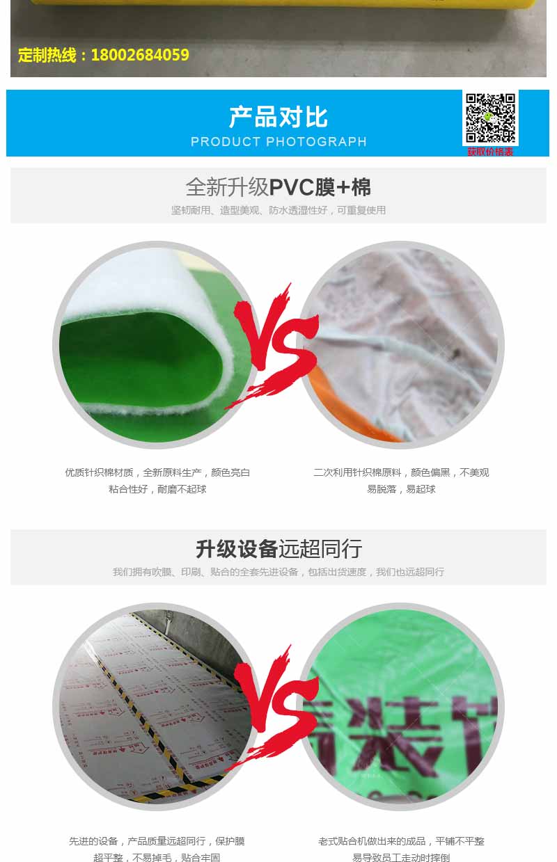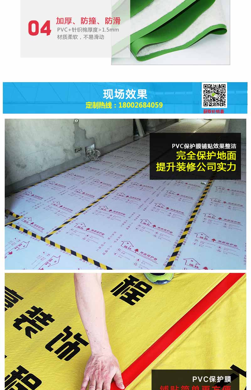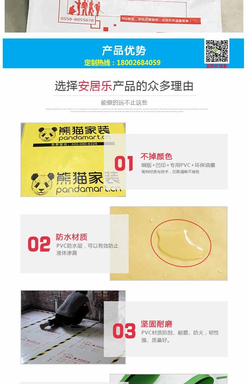 三要看的是柔韌性。質(zhì)量較好的地面保護(hù)膜不會因為天氣冷的原因而產(chǎn)生裂開現(xiàn)象。第二,用手抓,也不會有痕跡在上面。特點(diǎn):抗撕拉、抗刮痕、耐磨。這個很簡單,因為原生基材的成本價比較高,一些商家為了謀求暴利就使用回收廢料做扣板基材,這樣會使地面保護(hù)膜的強(qiáng)度和韌性大打折扣,必然會出現(xiàn)質(zhì)量隱患。