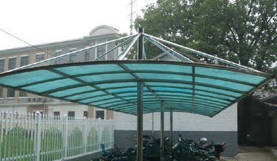 陽光板車棚:陽光板車棚的篷布材質(zhì)是陽光板,而陽光板具有透明度高、質(zhì)輕、抗沖擊、隔音、隔熱、難燃、抗老化等特點(diǎn),廣泛應(yīng)用于商業(yè)、工廠、體育場館的采光天棚和遮陽雨棚、花卉大棚、以及電話亭、書報(bào)亭、車站等公用設(shè)施域。