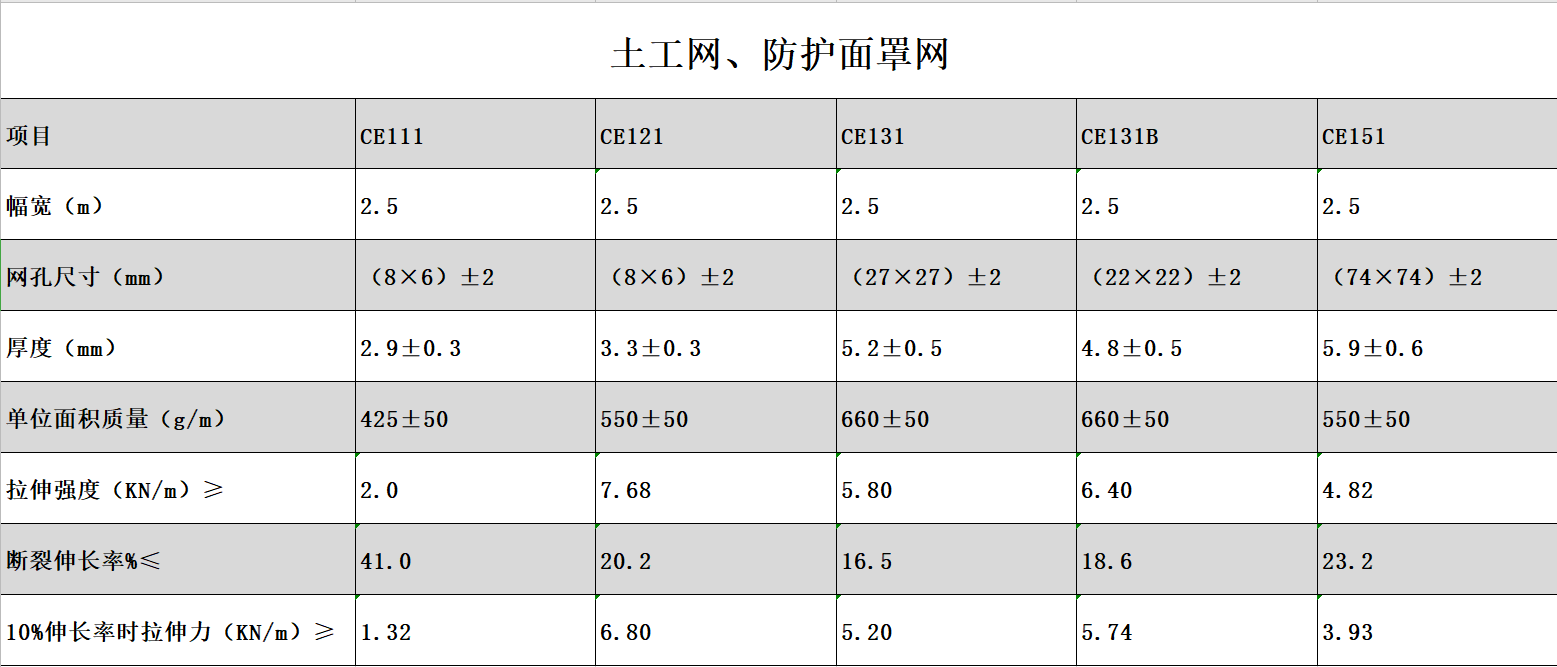 土工網(wǎng)是由高密度聚乙烯經(jīng)擠壓成方形、菱形、六邊形網(wǎng)格狀的產(chǎn)品,具有拉伸強(qiáng)度和耐久性、化學(xué)穩(wěn)定性、耐候性、耐腐蝕等性能。因此可廣泛用于巖土工程的諸多方面。該產(chǎn)品規(guī)格具備。
