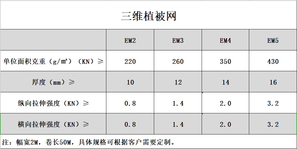 三維植被網(wǎng)是一種新型土木工程材料(hdpe高密度聚乙烯),屬于高新技術(shù)產(chǎn)品目錄中新型材料技術(shù)領(lǐng)域重復(fù)各材料中的增強體材料。是用于植草固土用的一種三維結(jié)構(gòu)的似絲瓜網(wǎng)絡(luò)樣的網(wǎng)墊,質(zhì)地疏松、柔韌,留有90%的空間可填充土壤,植物根系可以穿過其間岸,舒適、整齊、均衡的生長,長成后的草皮使網(wǎng)墊、草皮、泥土表面牢固地結(jié)合在一起,由于植物根系可深入地表以下30--40cm,形成一層堅固的綠色復(fù)合保護層。