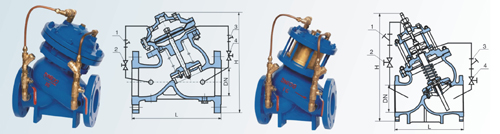 jd745x型多功能水利控制閥結(jié)構(gòu)圖片 jd745x型多功能水利控制閥安裝示意圖 jd745x型多功能水利控制閥產(chǎn)品用途 jd745x型 pn10~pn25多功能水力控制安裝在有高層建筑給水系統(tǒng)的水泵出口管道上,防止介質(zhì)倒流,防止水錘及水擊現(xiàn)象的產(chǎn)生。一閥兼具電動(dòng)閥、逆止閥和水錘消除器三種功能,可有效地提高供水系統(tǒng)的安全可靠性。 jd745x型多功能水利控制閥產(chǎn)品特點(diǎn) 1、消除水錘效果好。將緩開、速閉、緩閉消除水錘的技術(shù)原理一體化,防止開泵水錘和停泵水錘的產(chǎn)生 2、操作方便。只需操作水泵電機(jī)啟閉按鈕,閥門即按照水泵操作規(guī)程實(shí)現(xiàn)自動(dòng)開閉 3、節(jié)能效果好。閥體采用了全通道流線型直流式設(shè)計(jì),壓力損失小,流量大,且體積小,重量輕 jd745x型多功能水利控制閥主要外形和連接尺寸
