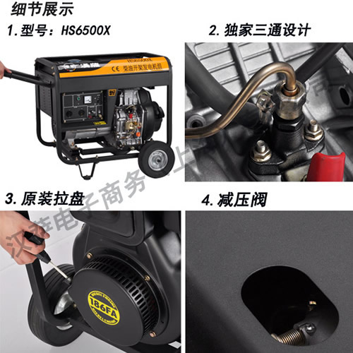 品質(zhì)優(yōu)良、低燃油消耗、噪聲低、輸出功率大,性能可靠。其可靠的穩(wěn)定性、經(jīng)濟(jì)性、動力性、耐久性和環(huán)境安 全性受到國內(nèi)外用戶的歡迎,全球三包連保。中德合資德國進(jìn)口漢薩,德國羅賓發(fā)動機(jī)具有體積小、重量輕、油耗低、功率高、工作可靠,配件供應(yīng)及維修方便。采用電子調(diào)速器,具有冷卻水溫過高、機(jī)油壓力低及超速報(bào)警并自動停車等保護(hù)功能。