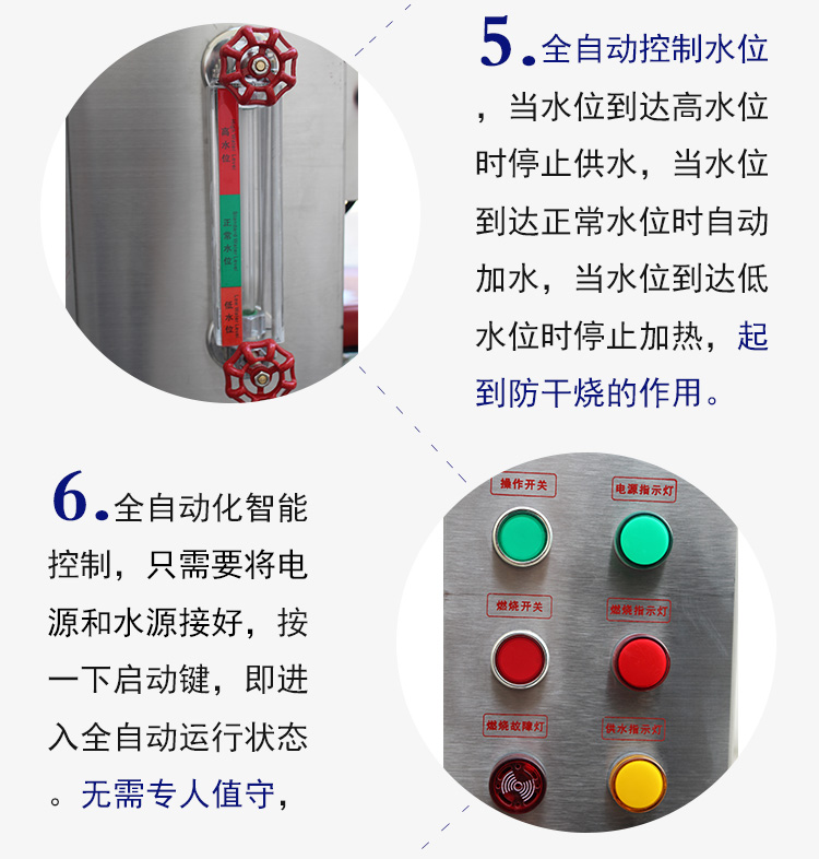 嚴(yán)禁使用井水,河水,湖水,因?yàn)闆](méi)有經(jīng)過(guò)水處理的水礦物質(zhì)特別多,雖然有些水用眼看起來(lái)很清,沒(méi)有渾濁現(xiàn)象,但是經(jīng)過(guò)鍋爐內(nèi)膽水反復(fù)燒沸騰以后,這些沒(méi)有水處理的水里面礦物質(zhì)會(huì)產(chǎn)生化學(xué)反映更厲害些,它們會(huì)粘在加熱管和液位控制器上面,這樣會(huì)產(chǎn)生下列情況: