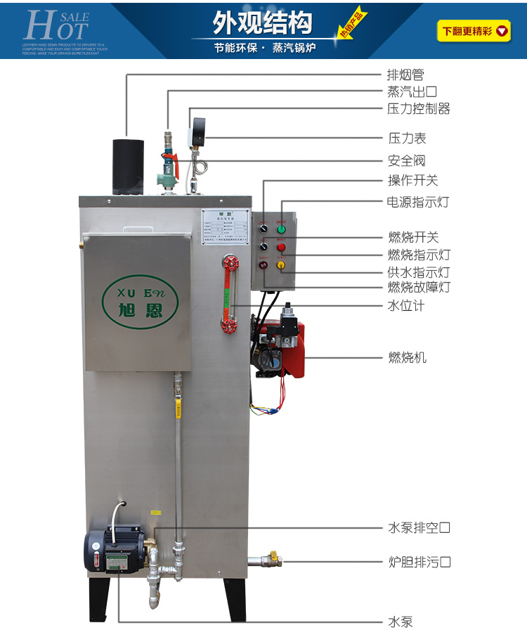 燃氣鍋爐采用機電一體化控制設(shè)備和可編程邏輯控制器聯(lián)合控制方式。以先進的可編程邏輯控制器為控制系統(tǒng)的“中央處理器”?刂葡到y(tǒng)通過觸摸屏進行操作,使鍋爐自動化控制程度和運行可靠程度大大提高,操作更加簡便直觀。 洗滌熨燙行業(yè):干洗機、烘干機、水洗機、脫水機、熨平機、熨斗、等設(shè)備配套使用。