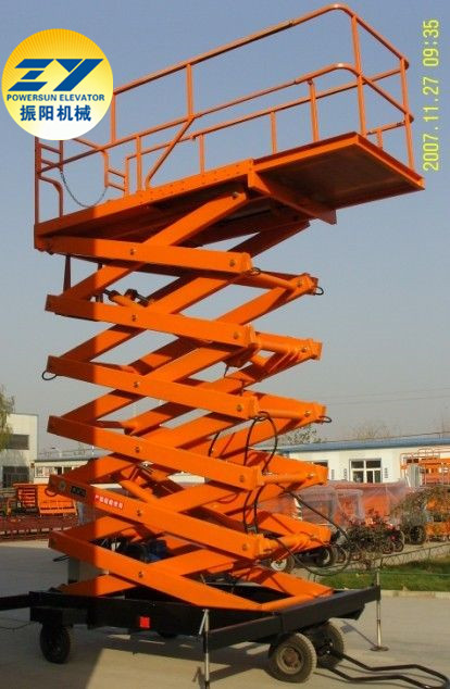 (二)移動(dòng)柴油機(jī)升降機(jī)是用途廣泛的高空作業(yè)專用設(shè)備,當(dāng)工作場(chǎng)所工作人員少或無其他牽引設(shè)備配合的工作環(huán)境就可選用該產(chǎn)品。當(dāng)它的剪叉機(jī)械結(jié)構(gòu),使升降臺(tái)起升有較高的穩(wěn)定性,寬大的作業(yè)平臺(tái)和較高的承載能力,使高空作業(yè)范圍更大、并適合多人同時(shí)作業(yè)。升降動(dòng)力分為220v或380v電源,柴油機(jī),或電瓶動(dòng)力源,特殊環(huán)境也可采用防爆泵站及防爆電器,升高4——22米,載重0.3—3噸。采用意大利和國(guó)產(chǎn)液壓泵站,臺(tái)面使用防滑絕緣扣板,具有防滑,絕緣、安 全,請(qǐng)放心使用。它使高空作業(yè)效率更高,安 全更保障。