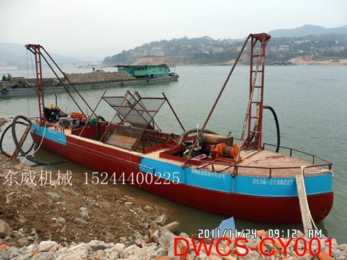 適用工況及特點(diǎn):該抽沙設(shè)備主要適用于水庫、河道、湖泊等寬車輛不能進(jìn)入的闊水域作業(yè),工作流程為抽沙船到抽沙區(qū)域,利用抽沙船的抽砂系統(tǒng)將沙子抽上來并進(jìn)行篩分,然后利用溜槽把沙子溜到運(yùn)輸船內(nèi)。運(yùn)輸船再將沙子運(yùn)輸至指定地點(diǎn)。該設(shè)備結(jié)構(gòu)簡單、工作量大、易損件少,抽出來的沙子含泥量低,無石塊,是近幾年采沙、清淤比較常用的工具