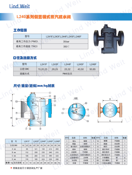 林德偉特浮桶式蒸汽疏水閥產(chǎn)品特點:
