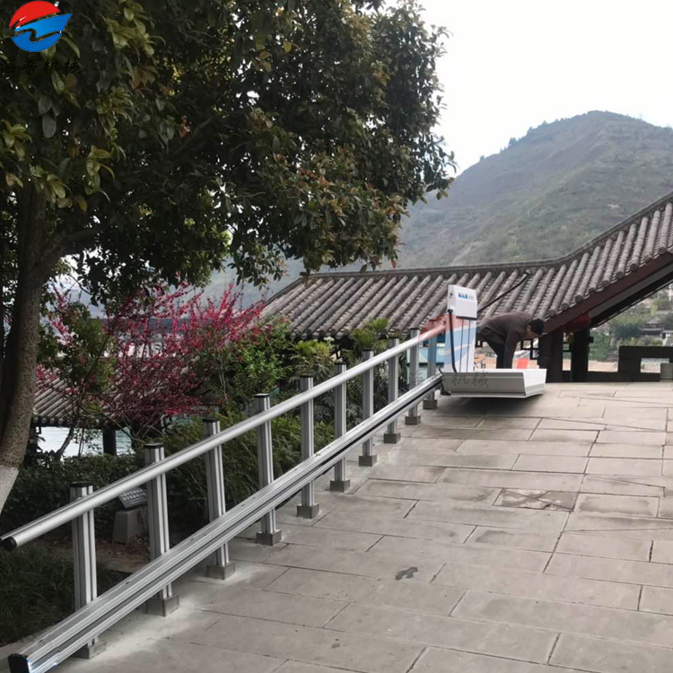我公司生產(chǎn)的該款殘疾人升降機(jī)采用剪叉式升降結(jié)構(gòu),液壓驅(qū)動(dòng),升降安 全,外部采用無(wú)盲道式不銹鋼臺(tái)面和護(hù)欄,