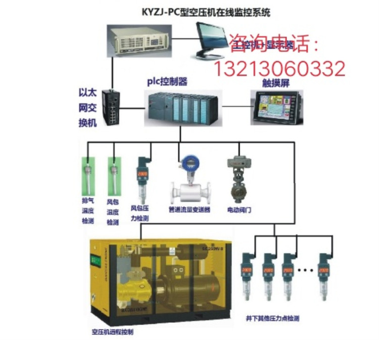 光啟kzj-pc空壓機(jī)在線系統(tǒng)由三部分組成,分別是上位監(jiān)控部分,數(shù)據(jù)傳輸部分,數(shù)據(jù)采集和處理部分。