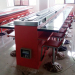 旋轉(zhuǎn)火鍋傳送設(shè)備 回轉(zhuǎn)火鍋設(shè)備用途廣泛,已經(jīng)成為當(dāng)今一種流行的元素 ,適用于壽司、火鍋、自助餐店及其他的商品展示。單人單爐符合人們的衛(wèi)生習(xí)慣,且該火鍋輸送設(shè)備具有兩用的優(yōu)點,冬天用在火鍋,夏天用在壽司,只要用特制的不銹鋼蓋板封住餐桌上的爐孔即可成為壽司輸送設(shè)備,既實惠又方便,讓您體現(xiàn)經(jīng)營壽司和火鍋的樂趣,又便于客人在各自的座位上可隨意選擇擺放在輸送帶上的食品,無需服務(wù)員送上。