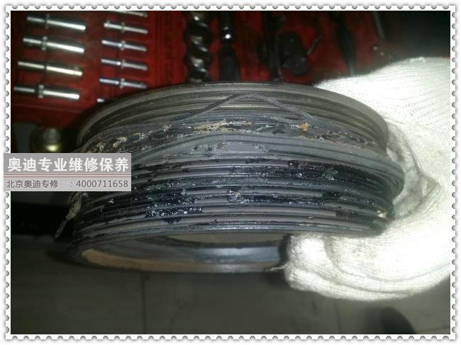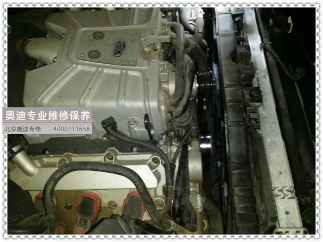 我們解決這個(gè)問題只需要更換幾套輪即可:其中包括大輪一套,漲緊輪兩只,導(dǎo)向輪一只。奧迪車型的本款車,更換這些組件需要拆卸前杠,水箱冷凝器,拆修比較麻 煩。本次更換作業(yè),使用了原廠的正品組件,整個(gè)費(fèi)用下來也只有4s的一半左右,真是非常的實(shí)惠。