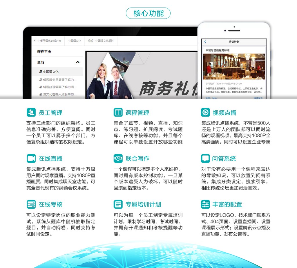 企業(yè)知識及培訓管理系統(tǒng)網(wǎng)埔e-training是青島同游網(wǎng)絡技術有限公司根據(jù)自身多年的教育平臺開發(fā)經(jīng)驗以及深入調(diào)研企業(yè)培訓需求后自主研發(fā)的一套針對企業(yè)內(nèi)部培訓管理的專用軟件,可以讓企業(yè)將自身知識及培訓資源進行整合,形成線上課程(圖文、視頻、直播等形式),員工通過手機或電腦即可線上學習并完成考核。