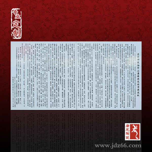 景德鎮(zhèn)唐龍?zhí)沾删妥溆谶@座城市的中央,公司集陶瓷設(shè)計、制作與銷售為一體,是一家具有一定實力與規(guī)模的陶瓷有限公司。我公司生產(chǎn)陶瓷瓷板畫,陶瓷裝飾畫,大型裝飾壁畫、瓷像肖像畫、瓷板畫屏風、梅蘭竹菊瓷板畫、仿郎世寧瓷板畫、景德鎮(zhèn)瓷器瓷板畫等多種款式與畫面等一系列瓷板藝術(shù)品。景德鎮(zhèn)陶瓷瓷板畫經(jīng)過1300度的高溫燒制后,畫面永不退色,不怕風吹日曬,耐火燒刀刮,具有很強保存與收藏的價值。景德鎮(zhèn)陶瓷瓷板畫工藝有手繪與貼花兩種,手繪的陶瓷瓷板畫是人工在瓷板上一筆一筆畫出來,然后再上色上釉再經(jīng)過高溫燒制出來的;貼花的陶瓷瓷板畫是畫面經(jīng)過電腦設(shè)計打印,然后把畫面印制到花紙上,在經(jīng)過高溫燒制出來。不論是貼花還是手繪的陶瓷瓷板畫,擺在家里,酒店,賓館,公司等公共場所,都是一道很亮麗的風景線。,青花畫面的素 雅簡單、高雅大方;粉 彩畫面的色彩艷麗,畫面形象生動,各有各的特色。