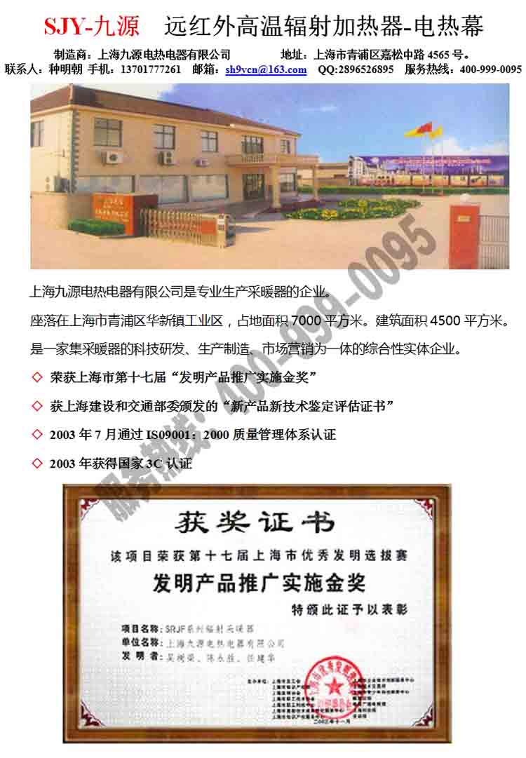 以上是上海九源電熱電器有限公司廠家直供四川省 高溫靜音電熱幕 輻射式電熱器 srjf-60的詳細信息,如果您上海九源電熱電器有限公司廠家直供四川省 高溫靜音電熱幕 輻射式電熱器 srjf-60的價格、廠家、型號、圖片有什么疑問, 請 聯(lián)系供應商 或 請供應商聯(lián)系我
