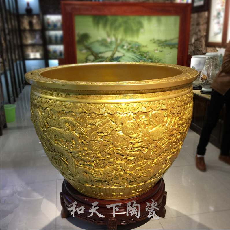 陶瓷大缸中國瓷都景德鎮(zhèn)特產(chǎn),不論是釉面、紋理、顏色、形狀,都具有景德鎮(zhèn)的陶瓷藝術特色,古典優(yōu)雅,彰顯您高雅品位。純手工拉坯、手工雕刻、并輔以專業(yè)畫面設計,手工彩繪而成坯。仿古制作,與現(xiàn)代制造工藝相結合,質(zhì)量更為穩(wěn)定可靠。風水魚,陶瓷風水魚缸,在中國古老的風水學中是將帶有吉祥兆頭的魚類,放進精心設計過方位的陶瓷風水魚缸,達到財源生生不息、消災解厄、家庭和睦的效果。陶瓷缸原產(chǎn)地為江西景德鎮(zhèn)市,這里的陶瓷世界聞名,其最主要的價值一個是在于她有著一千多年的官窯歷史,使得這里有著大量的陶瓷傳統(tǒng)手工藝人才,二是由于這里的瓷土資源比較優(yōu)良而且豐富。陶瓷缸從坯胎成型到修整,再到繪畫,最后上釉燒制,一整套工序全部為手工制作,由于陶瓷缸體型較大,陶瓷在胚胎階段又極易破損,所以其制作難度可想而知,使得其價值不菲.。安 全保障:運輸途中破損由我廠全權負責。