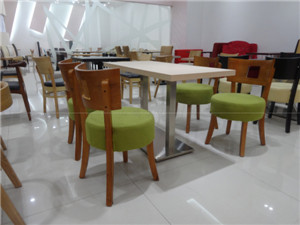 餐桌材質(zhì):臺面采用25mm實木多層板芯貼優(yōu)質(zhì)高級進口防火板貼面純實木手工封邊,腳架采用實木 多層板芯貼防火板面站腳配高溫靜電噴涂鋼腳