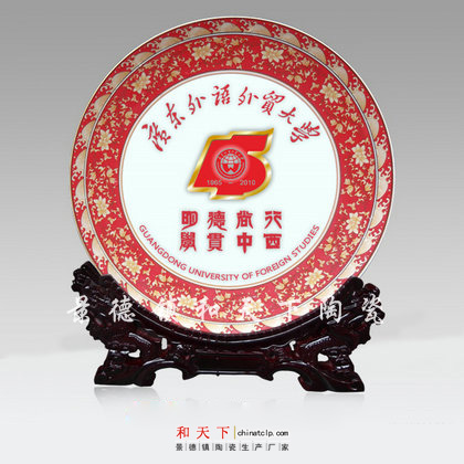 送禮送陶瓷紀(jì)念盤,現(xiàn)已成為一種趨勢(shì)。因其能夠保存?zhèn)魇,深受現(xiàn)代人的追捧。如校慶典禮定做校慶禮品紀(jì)念盤,商會(huì)成立定做紀(jì)念禮品瓷盤,年終促銷禮品時(shí)定做年終禮品紀(jì)念盤等等。說(shuō)到校慶禮品紀(jì)念盤,不得不說(shuō)到景德鎮(zhèn)市和天下陶瓷有限公司。為什么呢,因?yàn)楹显沾啥ㄗ龅男c禮品紀(jì)念盤畫面清晰,釉面光滑潤(rùn)澤,規(guī)格齊全,外觀精致且成功案例眾多。可見和天下陶瓷在定做校慶禮品紀(jì)念盤上經(jīng)驗(yàn)豐富,工藝精湛,才能深受客戶們的青睞。校慶禮品紀(jì)念盤不僅外觀器型優(yōu)美,且還接受個(gè)性化定制,可以滿足不同定制需求?梢栽谛c禮品紀(jì)念盤上加印母校的校訓(xùn)、風(fēng)景圖、標(biāo)志建筑、名字、年月日等,以此來(lái)紀(jì)念母校的教育之恩;五年、十年、十五年、二十年、三十年..