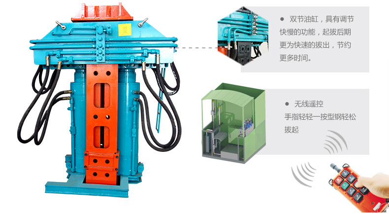 1. 一體式起吊設計雙節(jié)油缸,具有調節(jié)快慢的功能,起拔后期更為快速的拔出,節(jié)約更多時間。